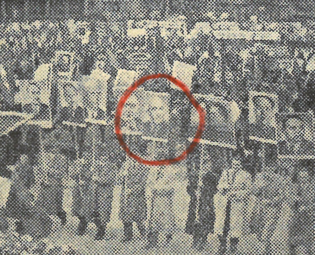 with a Rákosi portrait (circled) carried at the 1954 May Day march.