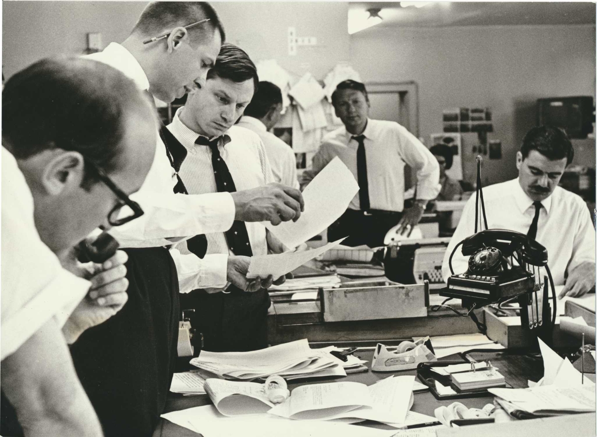 Editors at work in RFE/RL's News Room in Munich, 1967