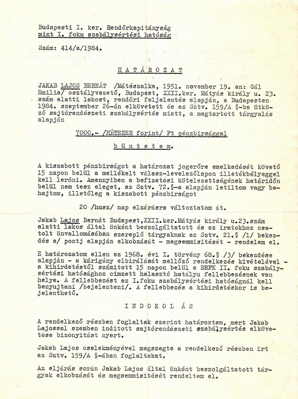 In addition to the publications, books, card and wall calendars issued by Áramlat [Stream] and Szabad Idő [Free Time] managed by Jakab, the collection containing classic samizdat material of the era was offered to Blinken OSA in 2016 and has now become available for researchers after being arranged and described in 2019.