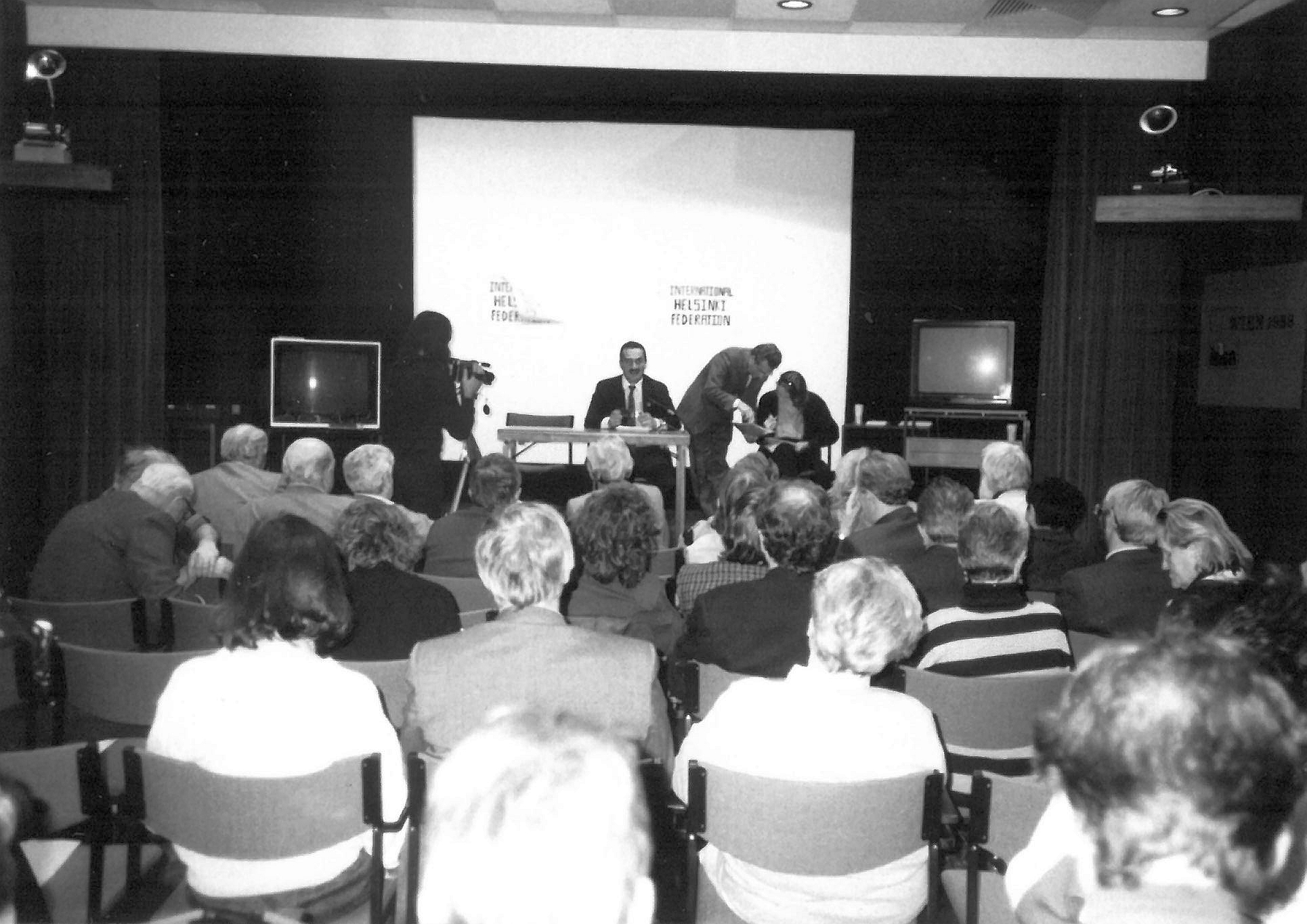 As their activities gradually came under attack from their governments, and their activists were severely persecuted, imprisoned or expatriated, in 1978 Andrei Sakharov launched an appeal “for the creation of a unified international committee to defend all Helsinki Watch group members.” Partly in response to the call, in the presence of 22 members from 18 countries and four observers, IHF was established in Bellagio, Italy in 1982, to provide all national Helsinki Watch groups with a network through which they could support each other’s work, and with a formal international organization which could speak up and act more efficiently on their behalf.