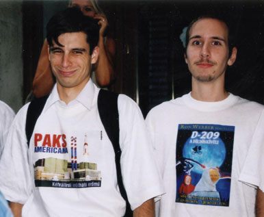 Environmental issues and even the technique of printed T-shirts were returning in works of the New Inconnu that from 2002 involved only two of its original members. In this photo we can see a T-shirt with the caption Paks Americana (a wordplay with the Paks Nuclear Power Plant and the Pax Americana): an act of protest against expanding the Paks Nuclear Power Plant with US investment. This message, similarly to the Inconnu’s environmental projects of the 1980s, was just one point in a wider chain of oppositional political messages.