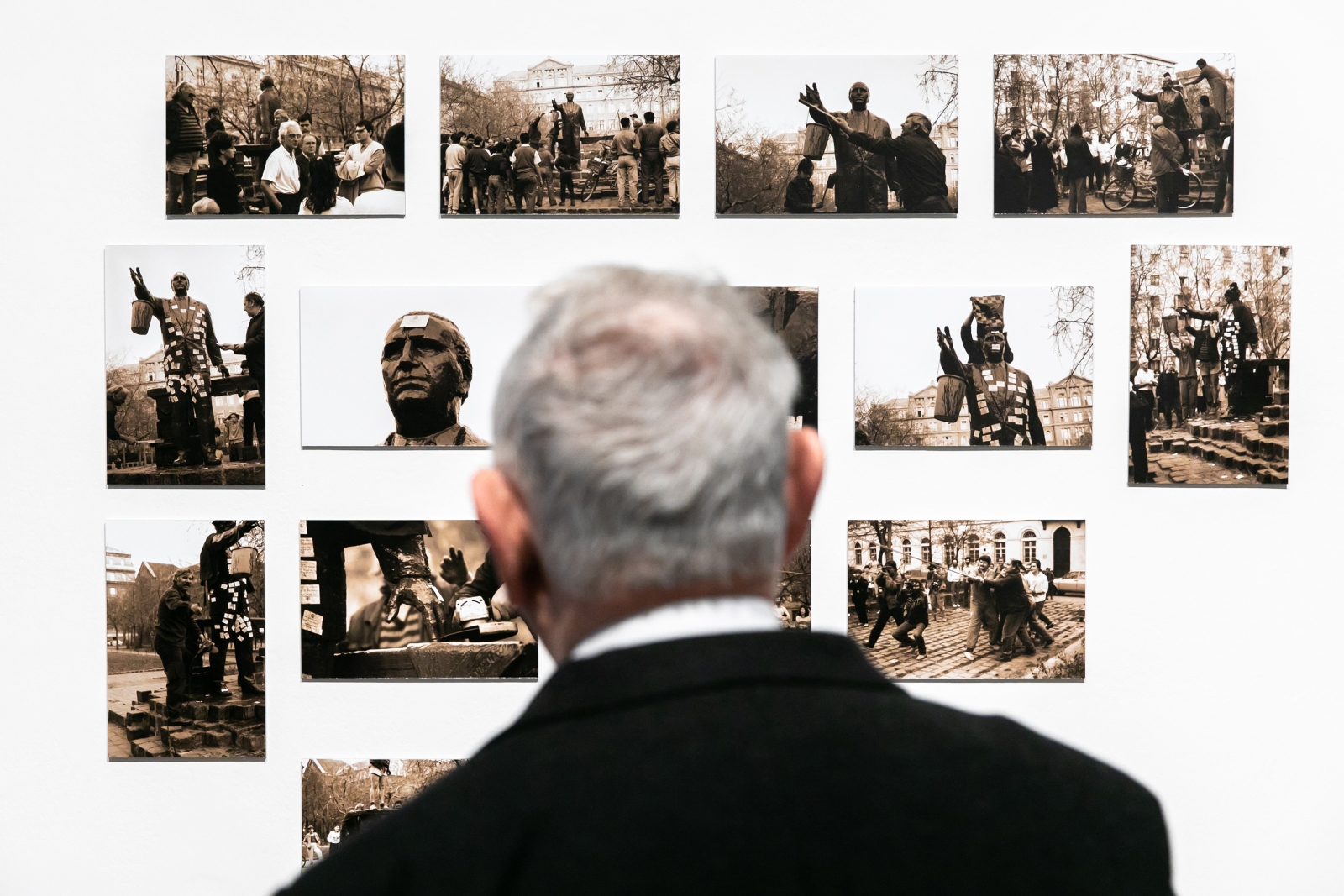 Éva Kapitány's photo series, on view at the exhibition, captures an episode from the historical process of the regime change; demanding the dismantling of Socialist public monuments, members of the Hungarian October Party, lead by György Krassó, topple the Ferenc Münnich sculpture at today's Honvéd Square, in 1990. Éva Kapitány has been working together with the OSA staff since 2019, to digitize her collection of more than 30,000 photos, making it fully available for research. Named POLARCH Political Photo Archive, Kapitány established her collection in 1987, to assemble the documentary pictures she was taking during the course of the regime change. As a member of the democratic opposition, she attended events the official press did not publish photos about, or with manipulated, distorted content at best. Her aim was, on the one hand, to document these events as they were, and on the other, to channel these images to people isolated from credible information. The result of this activity is an extensive documentation primarily of the public events of the regime change, with their well-known and, owing to Kapitány's personal point of view, the lesser-known participants as well.