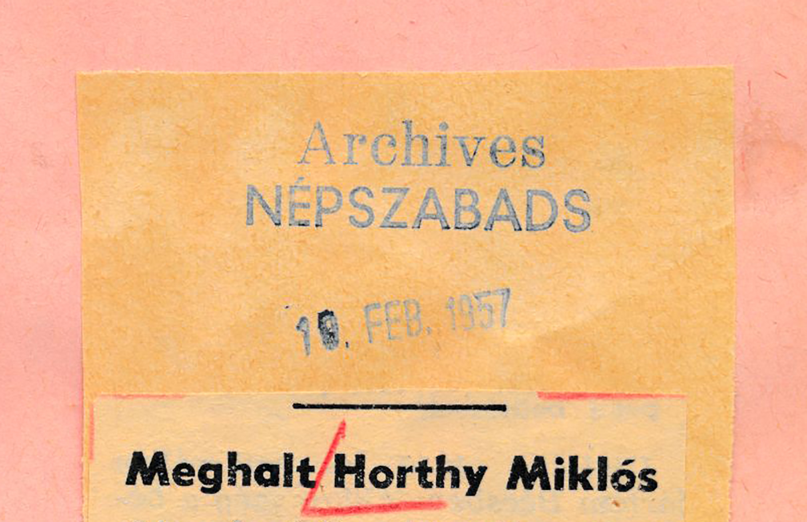 At the Hungarian Office of RFE/RL, information on Miklós Horthy were sorted into a separate Biographical File, providing now a horizontal view over Western and Eastern obituaries published in 1957, following the former governor’s death.