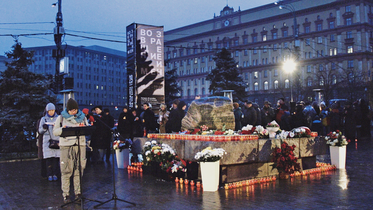 Queue around the Solovetsky Stone at a Return of the Names event.