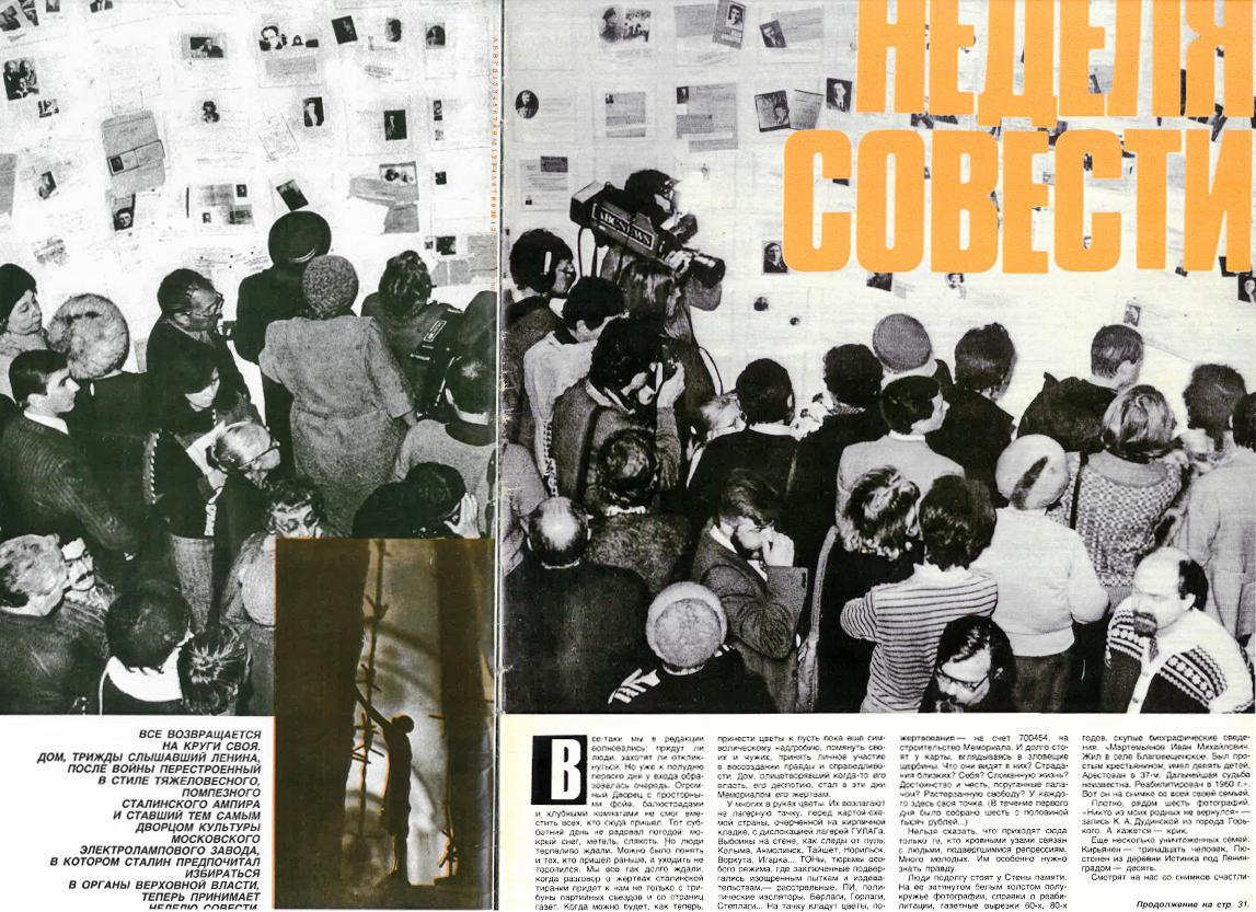 Ogonyok ’s photo reportage on the Week of Conscience, with photo capturing the Wall of Memory.
