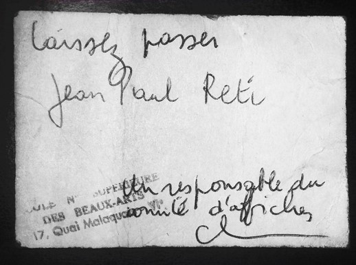 "Laissez passer Jean Paul Reti. A responsible of the poster committee"