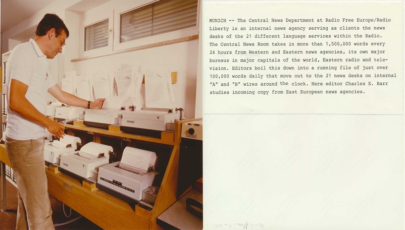 The pictures of RFE do not only transgress the usual narrative about power/ politics and discourses as constructed artifacts; they also suggest different approaches with regards to Cold War broadcasting and their archives. First of all, the images invite researchers to write the history of those concerned with truth technologies on their own terms. Instead of debunking the radios’ ideals of objectivity (so ardently conveyed by the photos), researchers could rather investigate the hardships and problems of Cold War journalistic reporting. Analysts and journalists tried to yoke the specific and the general together, to raise awareness among people from different national backgrounds and to speak truthfully to the audiences at home. Secondly, the self-advertising images unwittingly embed their operations within larger knowledge-production practices whose consequences we still need to excavate. They also position the very archival collections of Blinken OSA within broader epistemic loops which cannot be reduced to the Cold War alone. They should not be seen as the irrelevant fossils of the past, but as parts of an emblematic matrix of conceiving topics now. To what extent do comparative analyses of Eastern European countries owe anything to a transversal way of looking at issues? To what extent is the comprehension of certain regional issues helped or hindered by serial embeddings within transnational frames? To what extent are histories of the Cold War reproducing the conceptual inventories from which they extract data? The photos should not be taken only as the radio station’s proclaimed objectivity, which should be challenged by debunking, deconstructivist accounts, but as visual cues about lingering informational and epistemic practices.