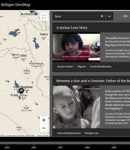 Refugee DocsMap is a visual geographic catalog of 600+ recent documentary films on the global experience of forcibly displaced people, who had to leave their countries due to uprisings against tyranny and state sponsored violence, wars and ethnic or religious conflicts. The collection aims at bringing the personal, unique story of refugees and asylum seekers at the forefront of the inquiry, in order to inform and diversify contemporary public discourse on them. |