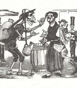 Skulls designed by Posada are the deepest and most symbolic pattern of his world, due to their implicit social and vindictive critics, little used at the time. The skulls could belong to anyone: to a baker or to a lady as well. The image of the skulls together with what has been mentioned before on his invincible spirit of criticism get more significance than a mere remembrance of the death of any being.