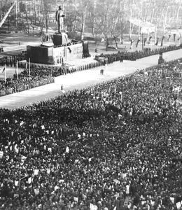 The exhibition focuses on Stalin`s death, the mourning ceremony, the funeral and the fate of Stalin`s remnants afterwards. The exhibition does not want to deal extensively with the Stalinist personal cult, it`s role in the Soviet political system, and it's visual representation (mass propaganda, socialist realist art, etc.). Our task is to reconstruct the long moment of the dictator`s death - from the official announcement of his physical collapse until the replacement of his embalmed corps from the mausoleum. Stalin was the ultimate embodiment of a regime in symbolic as well as in a physical sense. The exhibit aims at presenting and analysing the effect of the vanishing of his figure on the public, and also the problems his decease raised for the regime and for his successors.