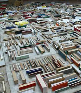 János Hübler and Nemere Kerezsi, two Ph. D. students at the Budapest Academy of Fine Arts (supervisor: György Jovánovics), have created this installation using two cubic meters of concrete and eighteen cubic meters of discarded books. Originally part of a large collection donated to the Central European University by Radio Free Europe’s research institute, the books, most of which had lost all relevance in the meantime, were offered to the public gratis. The eighteen cubic meters of books used for the installation are actually the leftovers, unwanted by the public. The two artists executed the project with the help of Márta Rácz. The books were built into a concrete foundation regardless of their content. Arranged with their spines pointing downwards, they constitute interesting shapes of various heights, due to their different sizes...