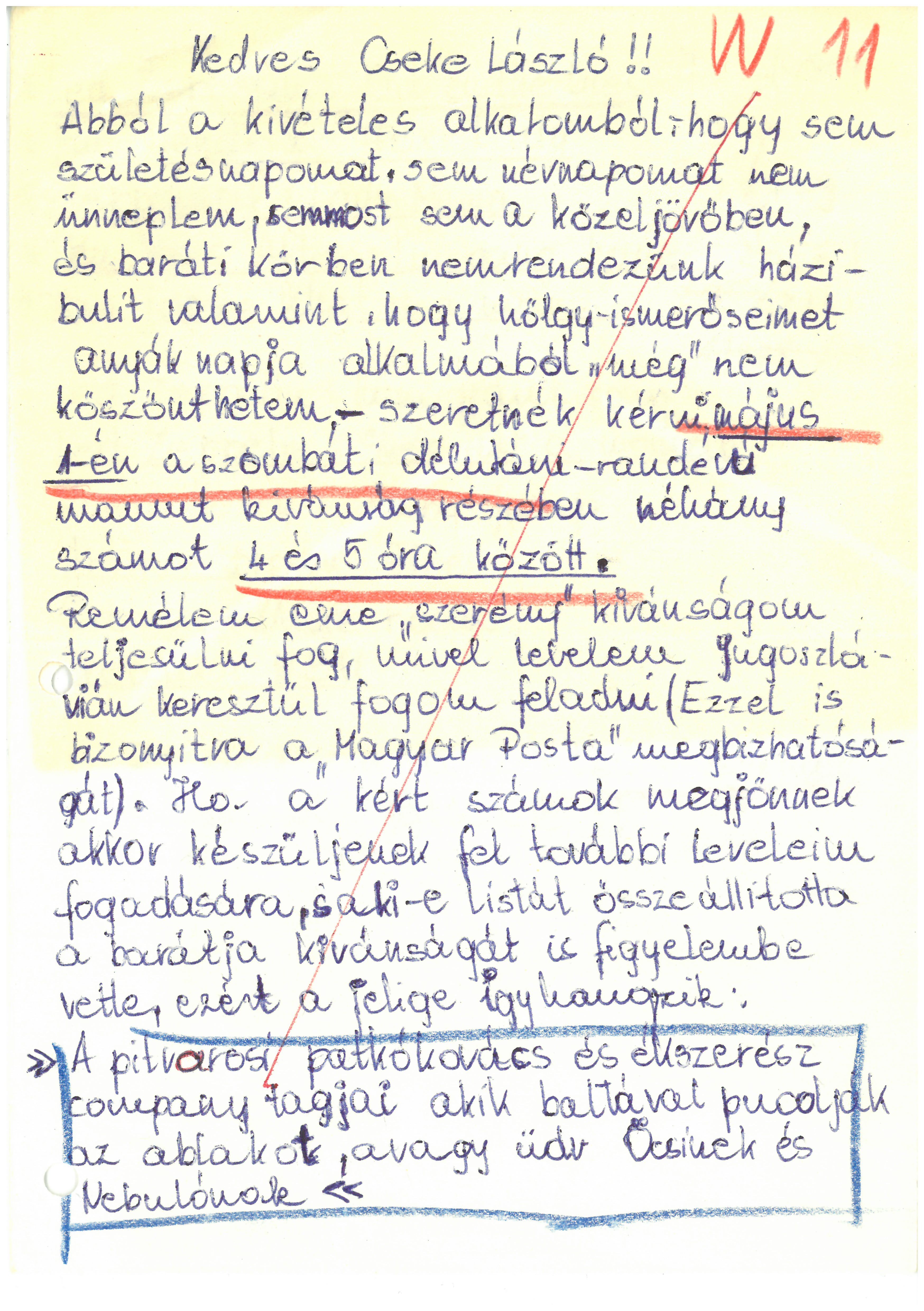 A SZER-t elvileg tilos volt hallgatni, így a leveleket a legkülönfélébb utakon kellett kijuttatni a szerkesztőségbe. A szigorú postai cenzúráról legendák keringtek, mindenki tudta, hogy a nyugati adókhoz küldött üzenetekkel gyorsan a szervek látókörébe lehet kerülni. Aki tehát itthonról postázott, tudatosan veszélyes játékot játszott, amelyben benne volt a rendszerrel való egyéni szembeszegülés vagánysága, de kockázata is. Erről tanúskodnak azok az alig kódolt, többértelmű kiszólások, amelyeket szerzőik a levélfolyamot ellenőrző szemnek szántak: "Üdvözlöm a CIA-t!" – kezdődik egy képeslapos üzenet 1971-ből. "Titkos rendőr csecsemő dudliját vizsgálja", "Lehunyta 4 szemét a 2 szemét" – feleselnek rá a gondosan megválasztott jeligék.