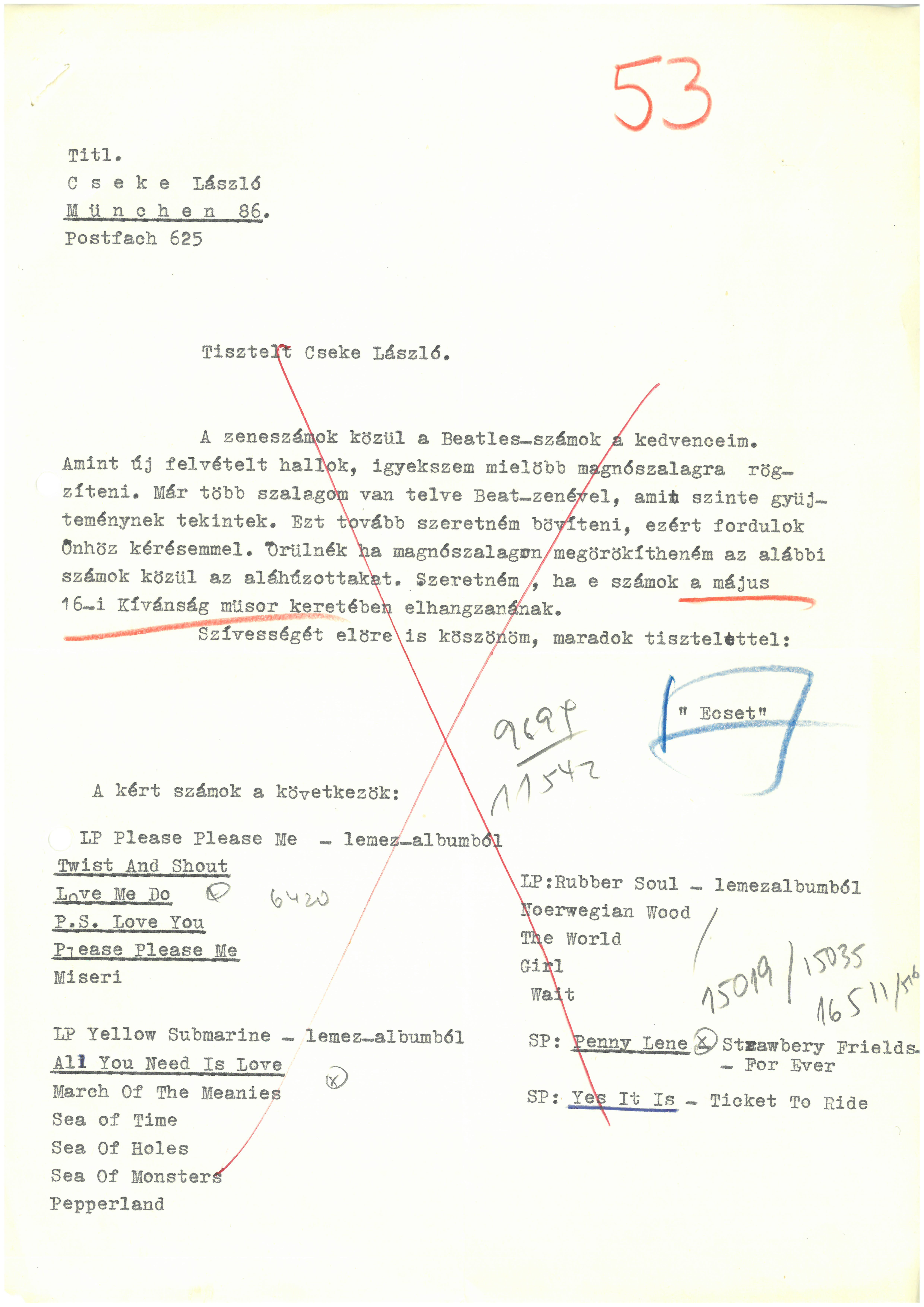 Az utolsó korong leforgatása után Cseke László (valódi nevén Ekecs Géza) mindig így búcsúzott hallgatóitól: "A Teenager Party postacíme: München 86, Postfach (Postafiók) 625." Hanem oda, vagy akár Cseke Lászlónak most már valóban nincs értelme írni, mert semmilyen válasz nem fog érkezni. Maradnak ezek az archív levelek, a sok esetben immár bélyegtelenített borítékok, képeslapok.