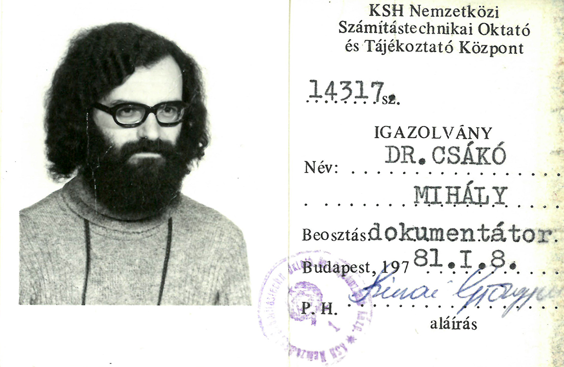 The fonds HU OSA 429 Mihály Csákó Personal Papers almost completely encompasses the exceptional career above, with its structure reflecting major biographical chapters. The largest, main subfond contains records related to Csákó’s social-scientific activities: from the examination of skilled workers (also including, besides research materials and reports, Gusztáv Hámos’s photo series) to computer technology and to political socialization. The series in the second subfond present his teaching activities at Eötvös Loránd University Faculty of Arts and its Institute of Sociology and Social Policy, in the United States, at Eötvös Loránd University Faculty of Social Sciences, and finally at the John Wesley College. His public activities preceding and following the 1989 regime change compose a shared subfond, with his samizdat collection next to the records of the employment agency and documents related to his trade union activities, as well as to the Independent Youth Parliament. The last, fourth subfond comprises personal documents and records related to Csákó’s scientific memberships, employers, and university studies, also including leaflets and draft translations from the defining years spent in France.