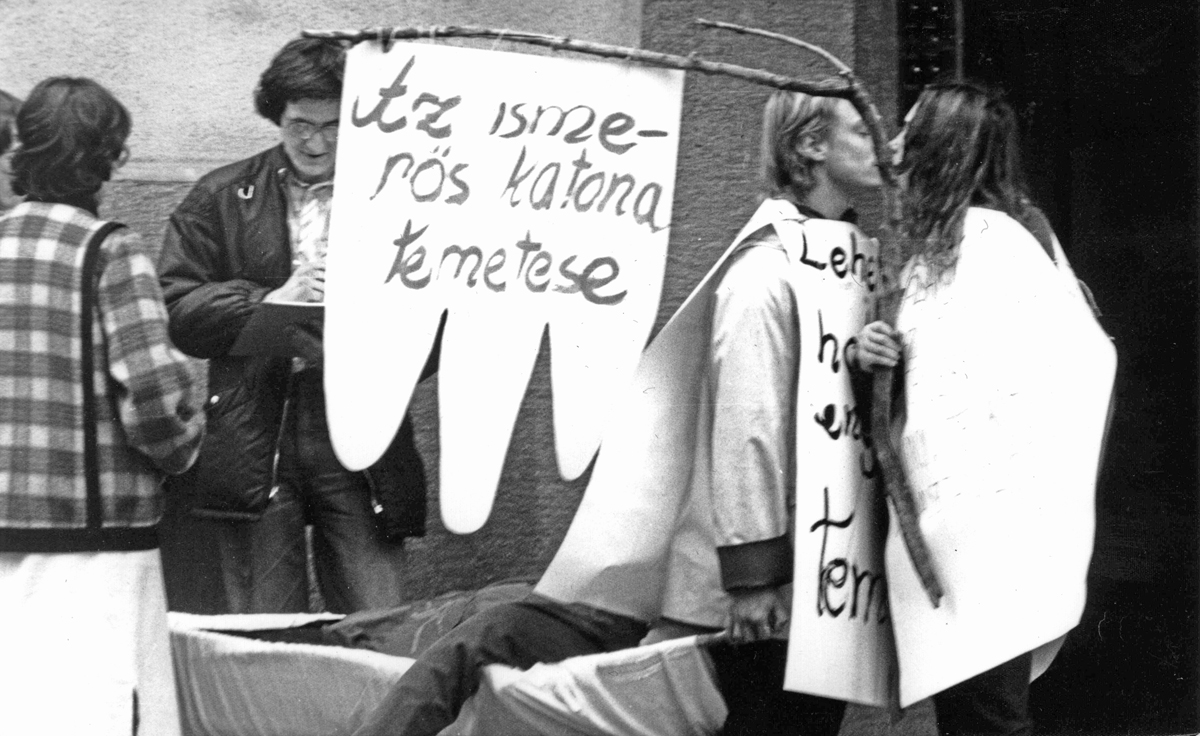 Blinken OSA is happy to announce that the photo series composing the archival fonds HU OSA 462 Photographs of the Dialogue Peace Group is now accessible in our Research Room and on the OSA Research Cloud. Donated to the Archives by Professor and former pro-Rector at CEU Zsolt Enyedi, the photos document a lesser-known street happening of the Hungarian independent peace movement, the Dialogue Peace Group.