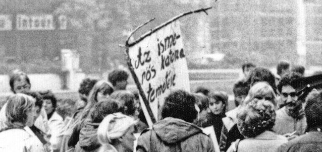 The Dialogue Peace Group was established in 1982 with the intention to launch a conversation between the Eastern and Western peace movements divided by the Iron Curtain. Their activity mainly comprised organizing lectures and public discussions, carefully distancing themselves from the emerging democratic opposition. For more than a year, the group succeeded in collaborating with the official Hungarian peace body and keeping at the same time close contacts with Western peace organizations. Yet, feeling threatened by the group’s growing popularity, the Hungarian state launched a series of intimidating actions against members in 1983, resulting in the group’s dissolution in July. Not all members agreed with the dissolution, however. Younger and more radical activists soon started organizing themselves again, this time in a more oppositional manner, with higher emphasis on street appearances.